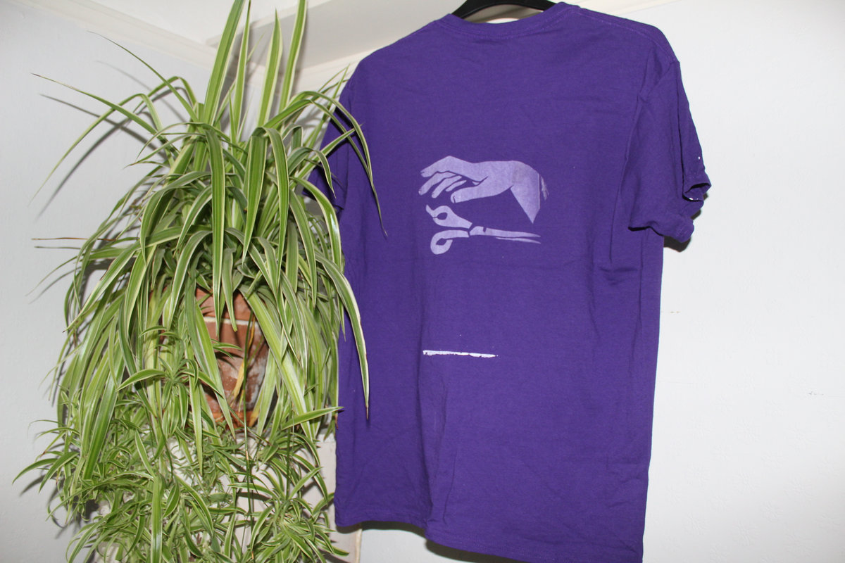 Being in a band and playing shows can often involve having a large impact on the planet through things such as driving around a lot to play shows etc. We decided that, for this run of shirts, we wanted to reduce this as much as possible and one of the ways we are doing this is by printing our own. In an attempt to circumvent any “fast fashion” ties and avoid putting more T-shirts into the world we looked to kilo sales to find shirts that already exist and our own Hannah and Tommy printed our own designs onto them. They are thoroughly washed.